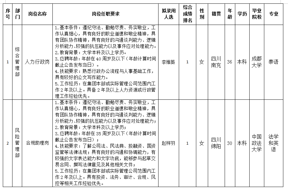 根据绵阳PP电子平台产业投资有限公司发布的招聘公告及招聘相关规定,经笔试、面试、背调等程序,拟录用李维薇等同志到绵阳PP电子平台产业投资有限公司工作,现予以公示,具体情况如下: